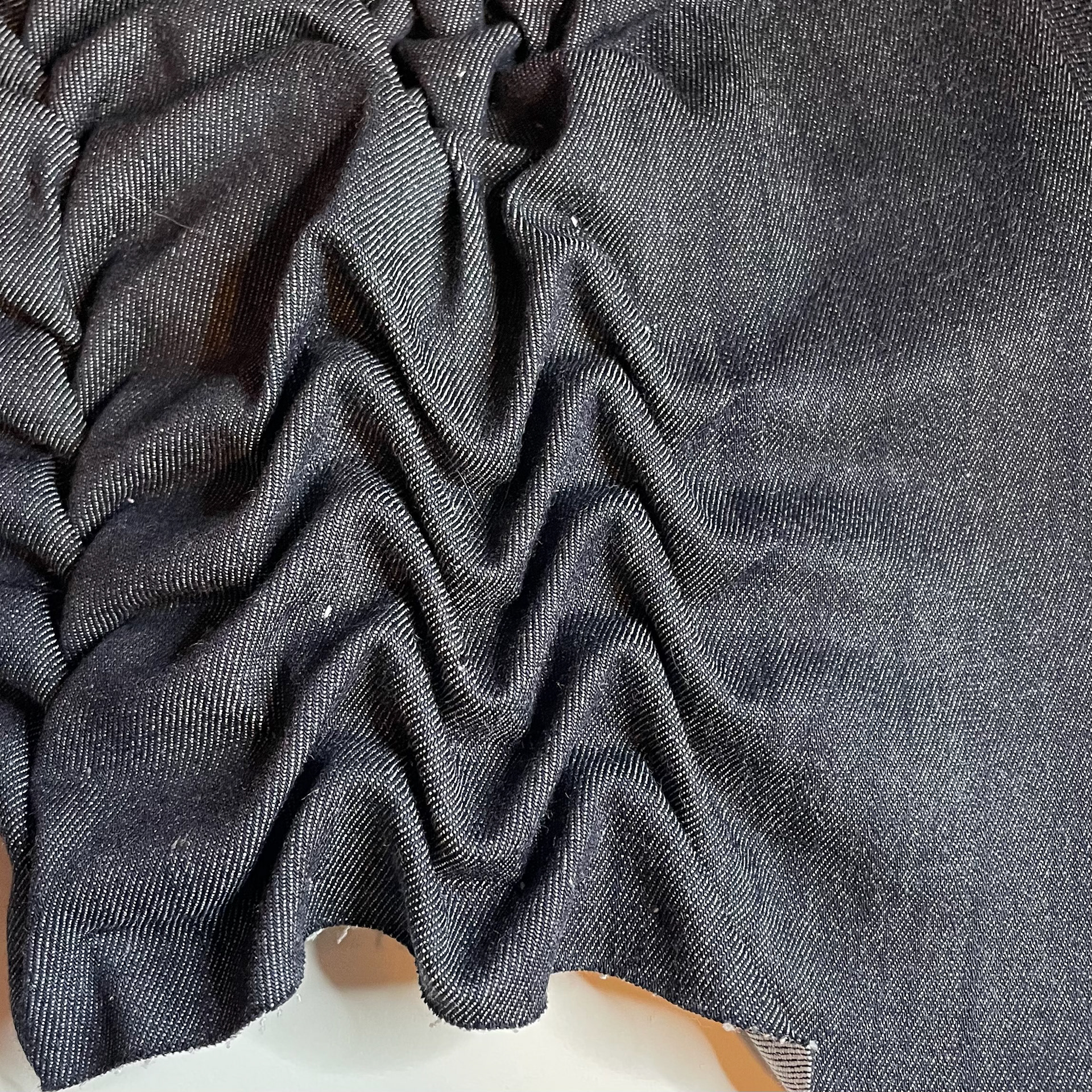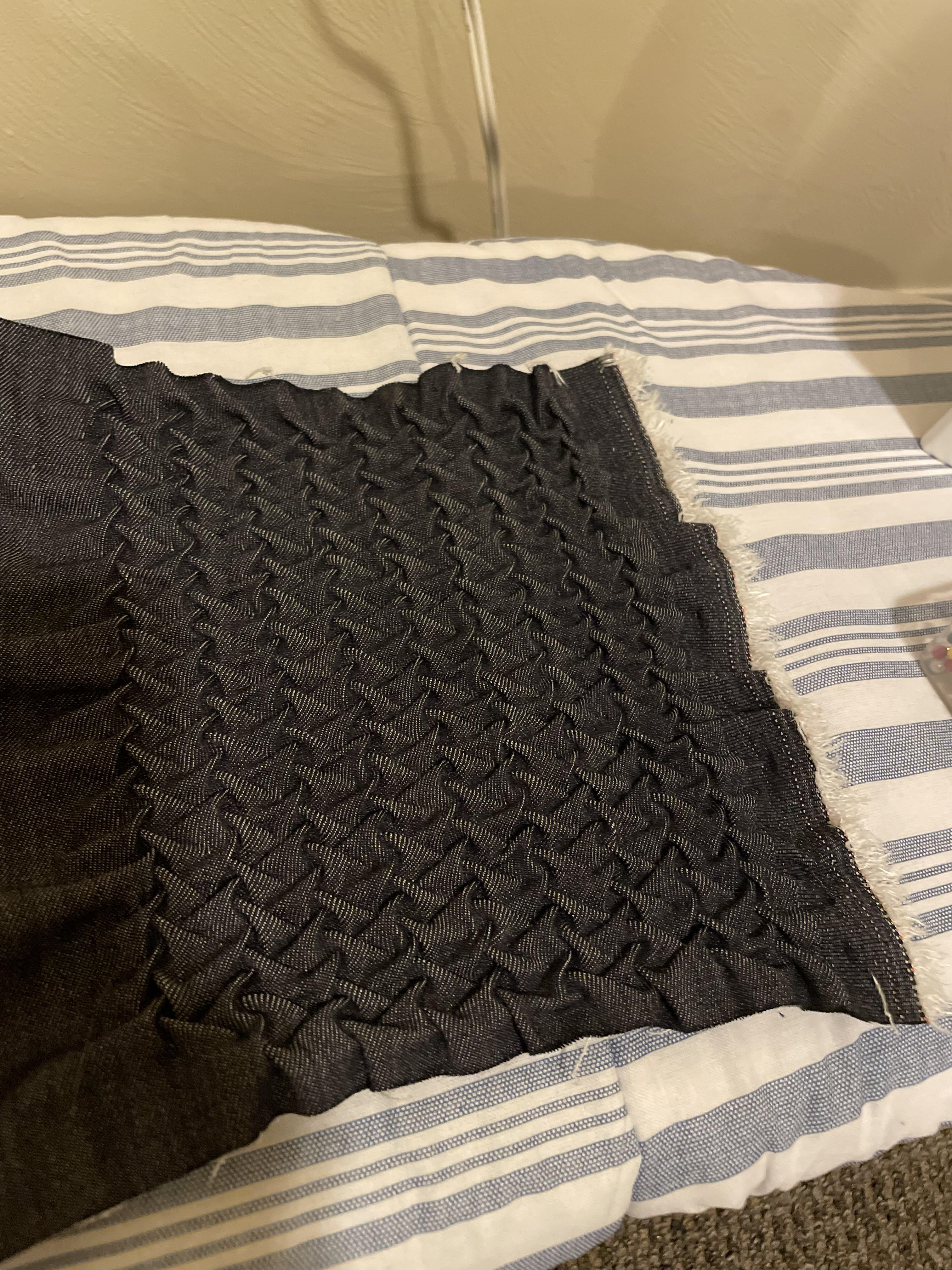 This denim collection explores hand smocking as both a decorative and functional technique. By allowing stretch and movement within the fabric, smocking is used to mimic elements traditionally achieved through ruched hems or ribbed knit, reframing fabric manipulation as functional.